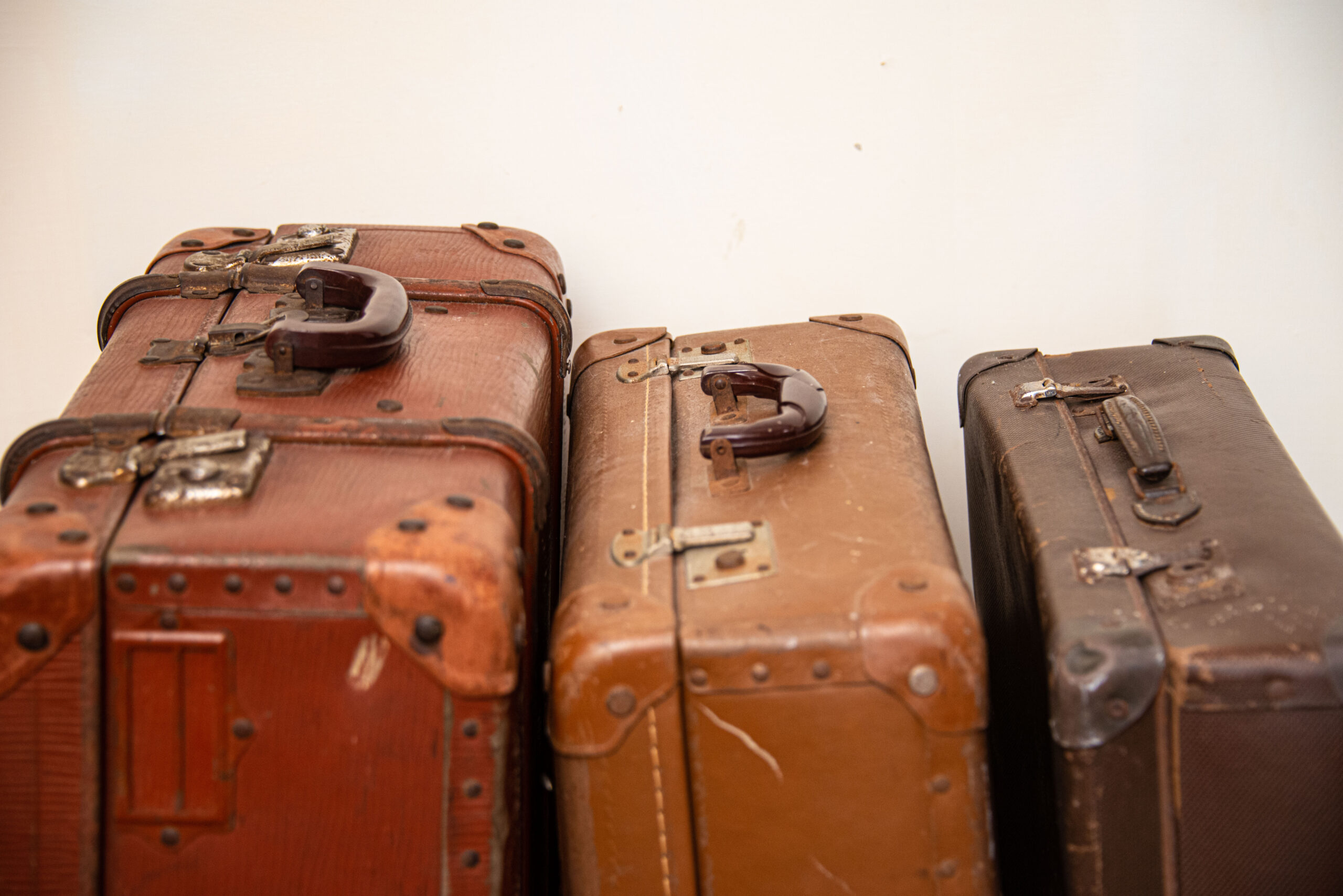 Valises anciennes au charme authentique, idéales pour une décoration de mariage ou d’événement au style rétro, bohème ou champêtre.