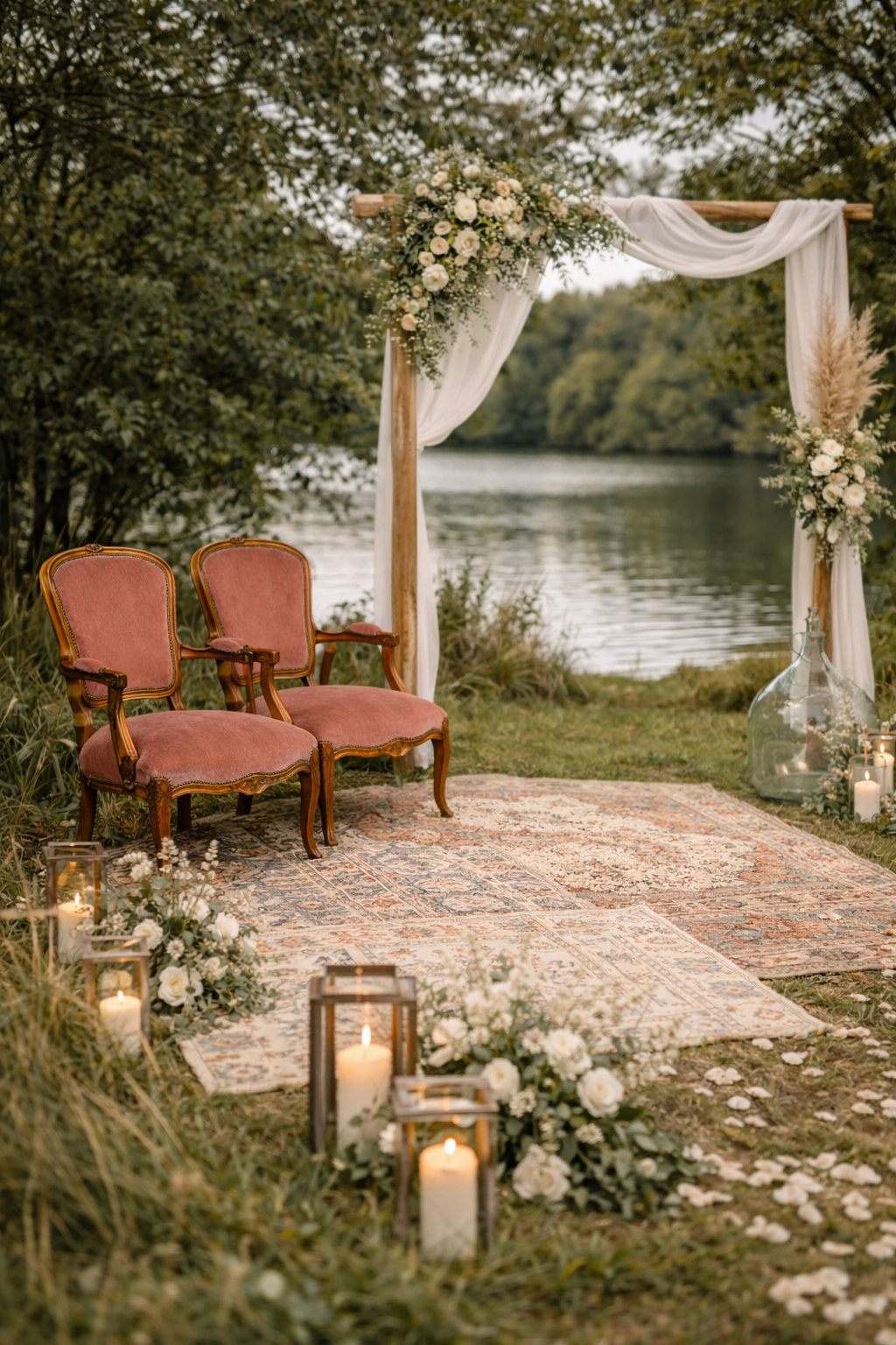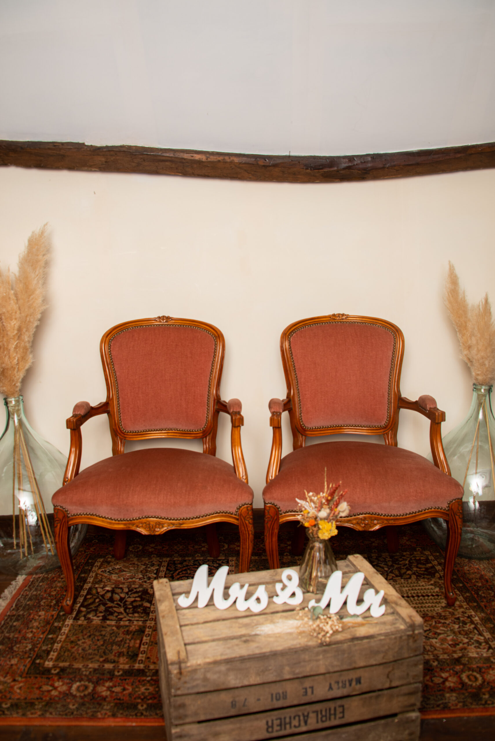 Élégants et confortables, ils apportent une touche raffinée et chaleureuse à votre décoration. Idéal pour un coin photo, un espace lounge ou pour mettre en valeur les mariés.