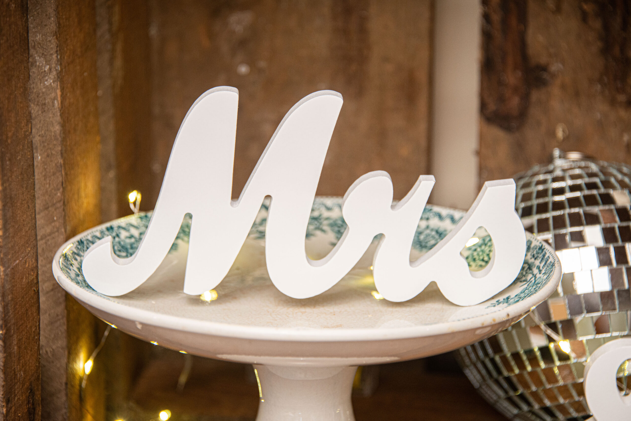 Un joli duo de lettres décoratives pour mettre en valeur la table des mariés ou sublimer un décor de cérémonie. Une touche romantique et moderne qui attire le regard.
