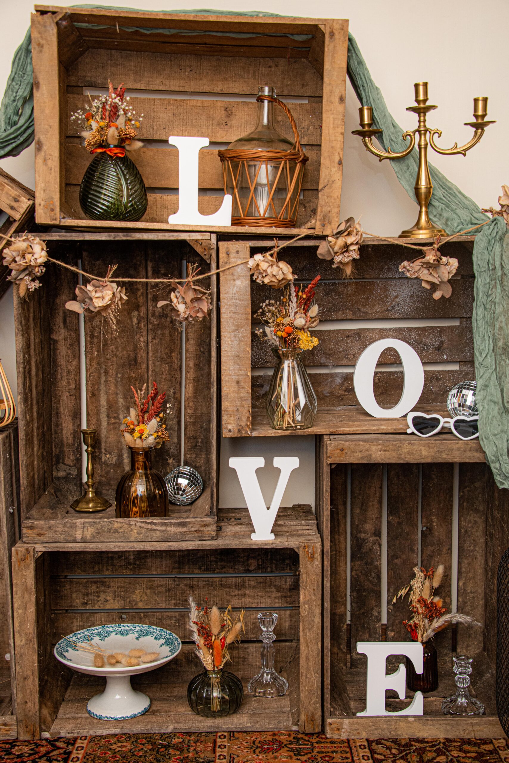 Ensemble décoratif complet, idéal pour créer une ambiance chaleureuse et bohème lors d’un mariage, d’un anniversaire ou d’une séance photo.