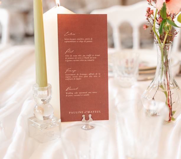 Porte-menu élégant en métal avec base stable et pince discrète pour maintenir vos menus, numéros de table ou cartes.