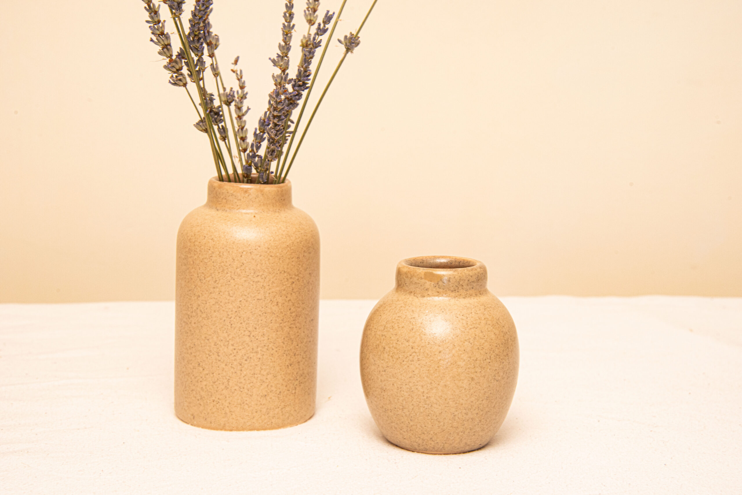 Ce joli duo de vases en grès, aux formes simples et authentiques, apporte une touche rustique et chaleureuse à vos décorations. Leur teinte douce et leur texture légèrement mouchetée s’accordent parfaitement avec des compositions de fleurs séchées ou fraîches. Idéals pour une ambiance bohème, champêtre ou naturelle.